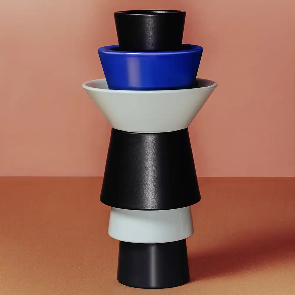 Die tichterförmige Vase 1030 ist ein Entwurf des Memphis-Mitbegründers Marco Zanini und entstand im Jahr 2004.